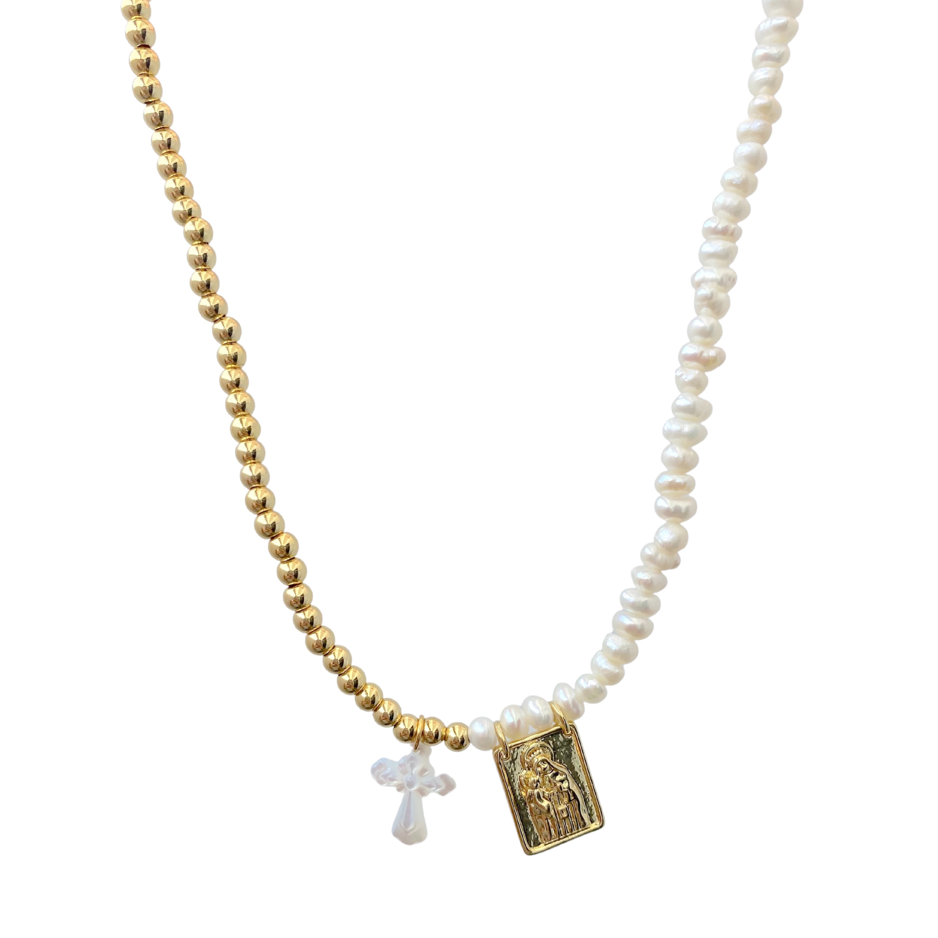 Maria Auxiliadora with Cross Necklace