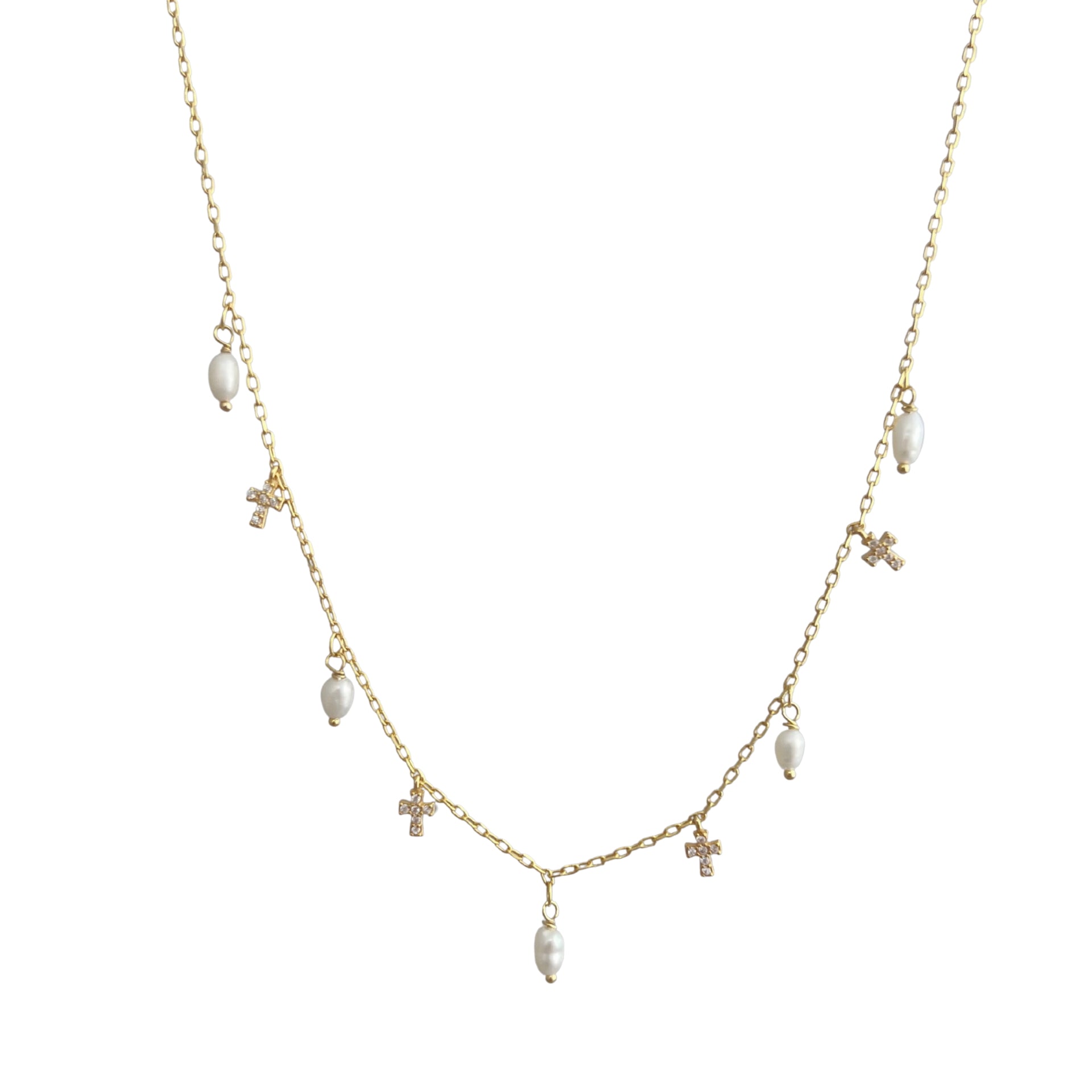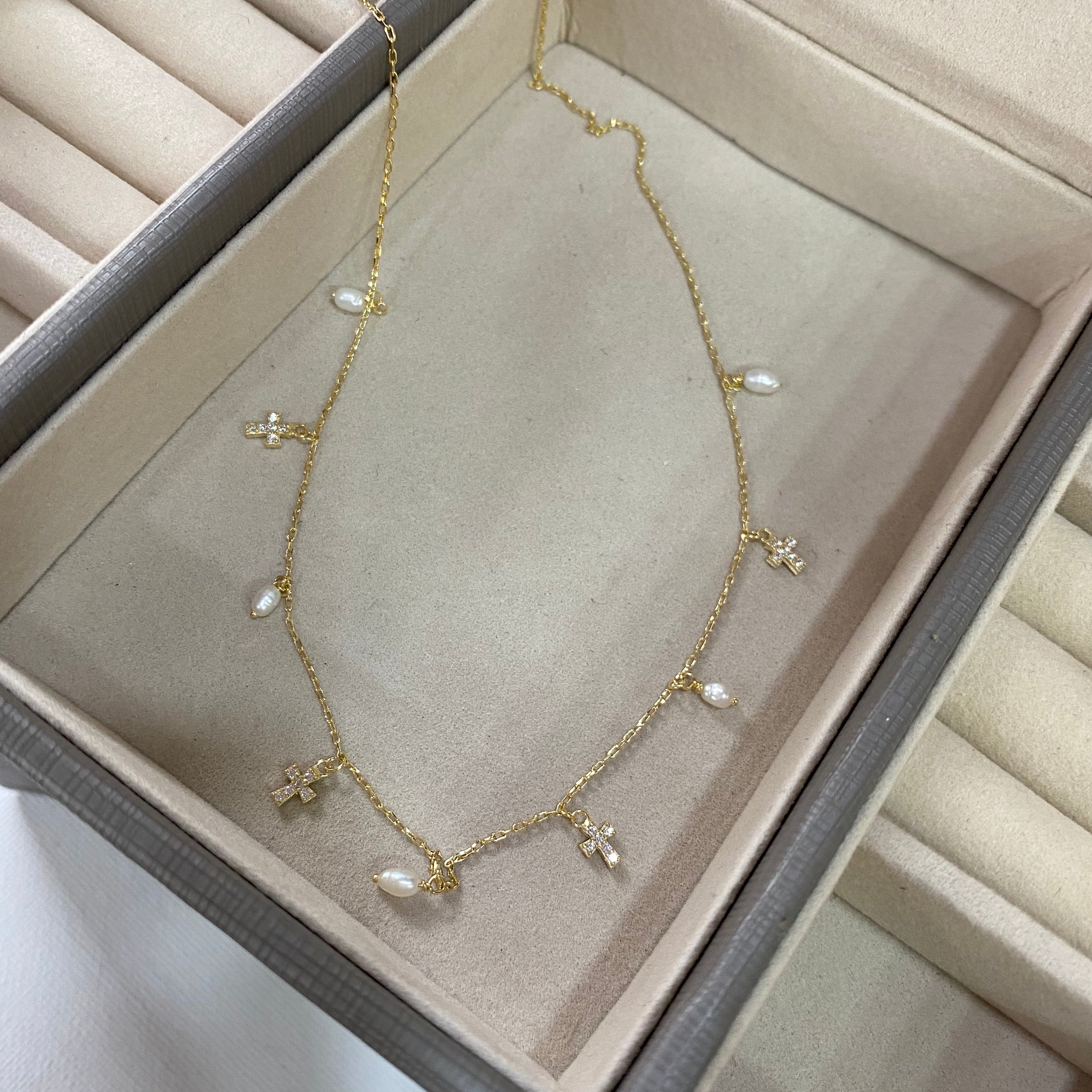 Multi Cross Pearl Dangle Necklace