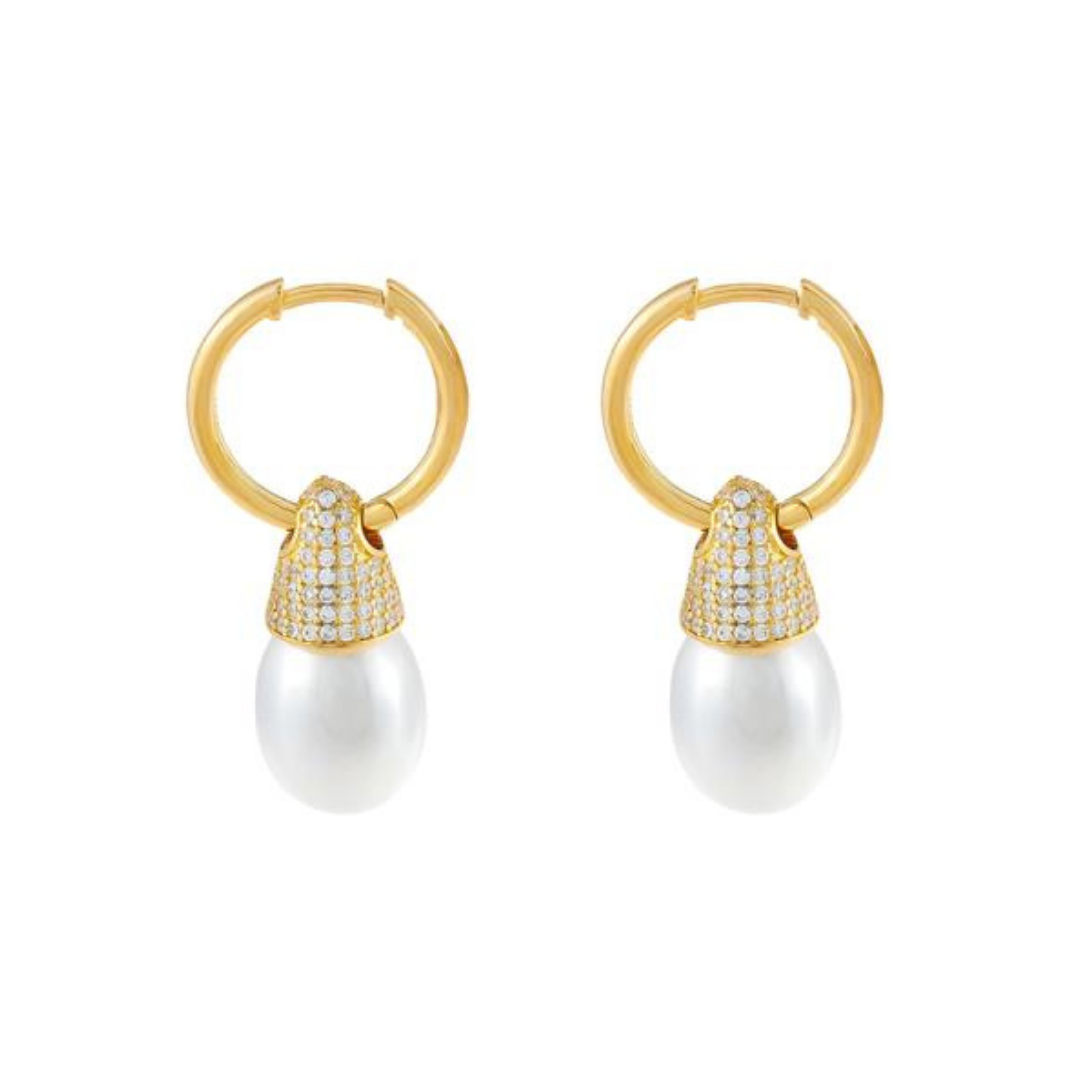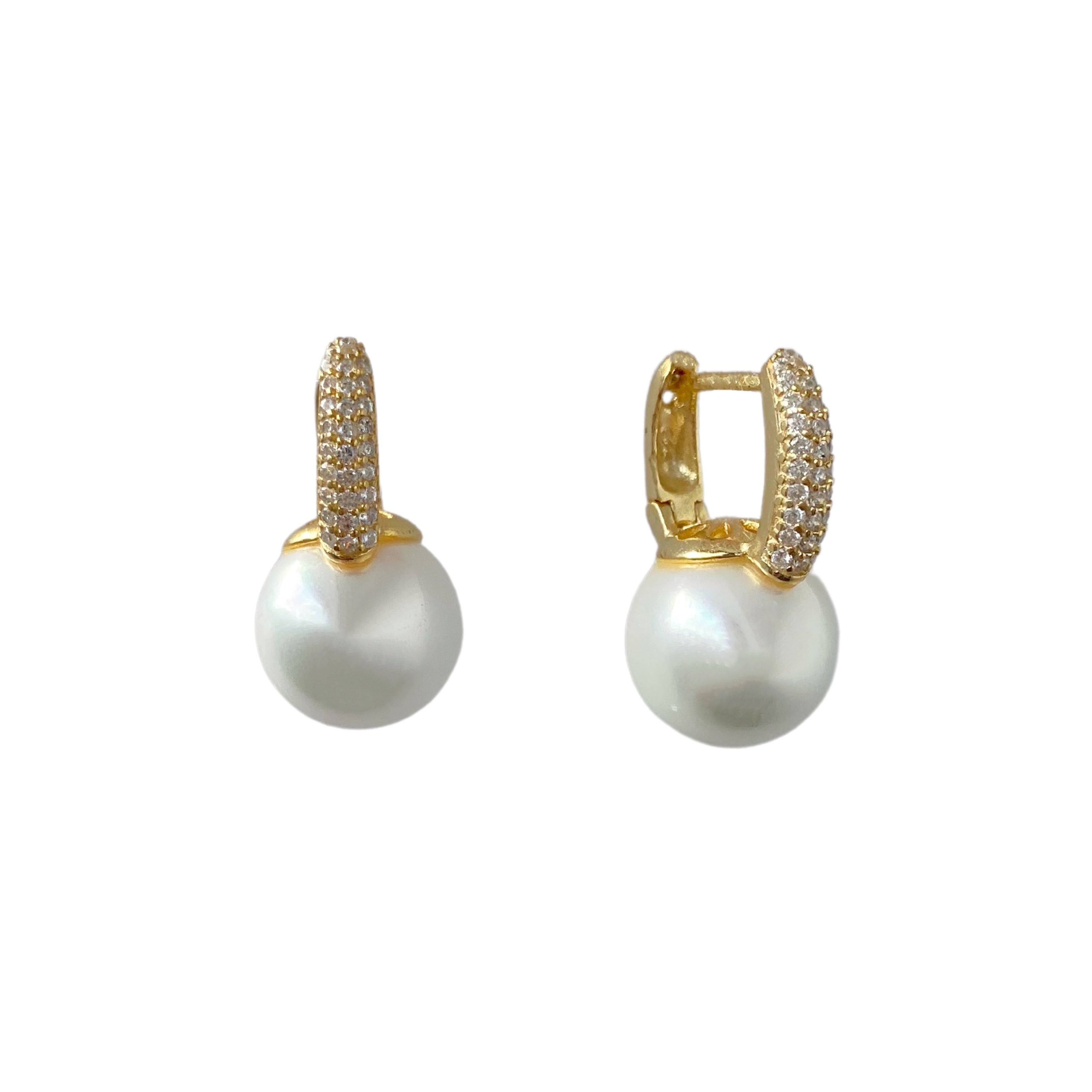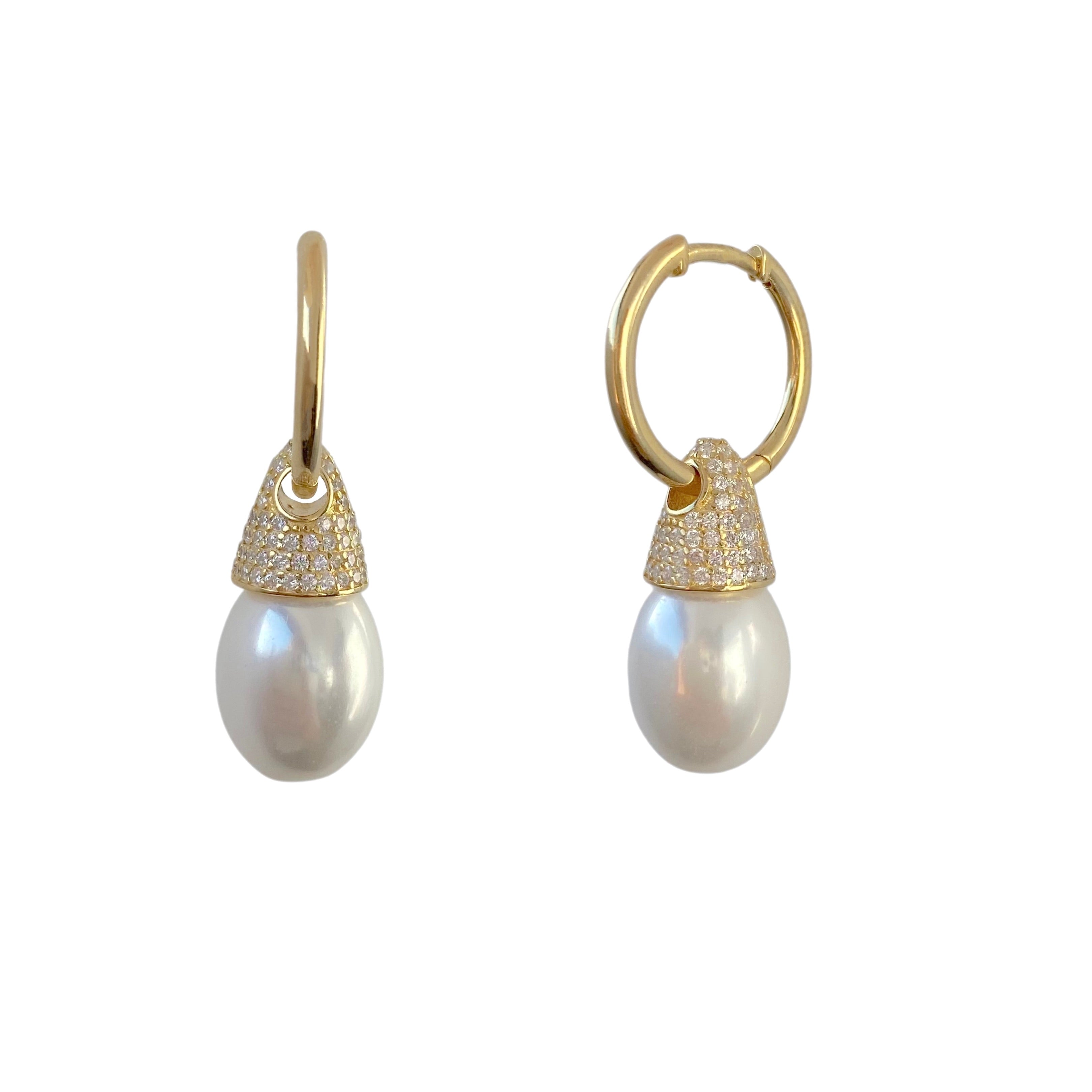 Pave Pearl Drop Huggie